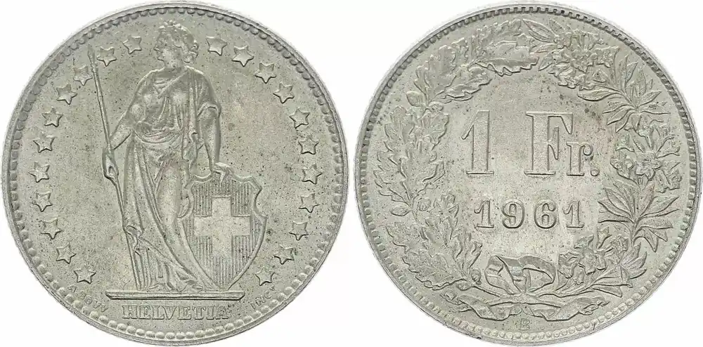 Suisse 1 Franc Helvetia – 1961 B Berne Prix Réduit