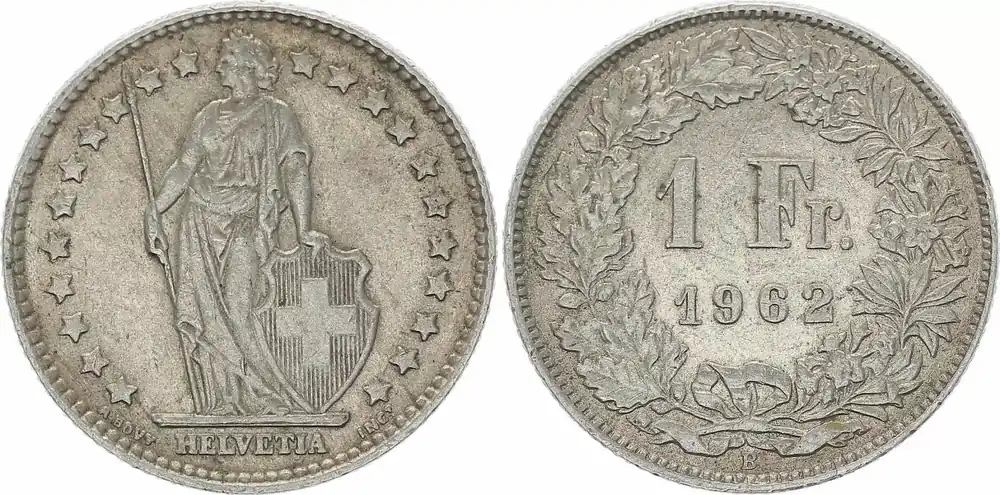 Suisse 1 Franc Helvetia – 1962 B Berne Authentique