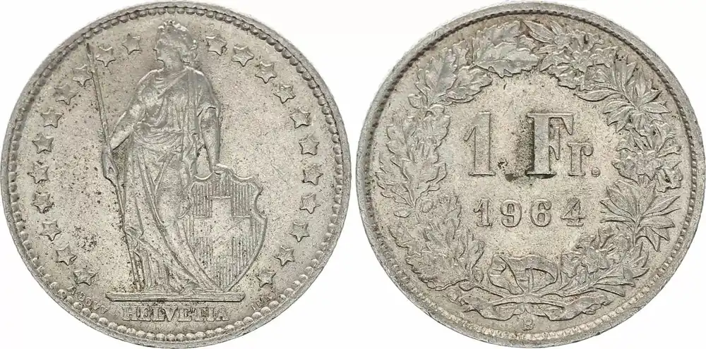 Suisse 1 Franc Helvetia – 1964 B Berne Prix Promo