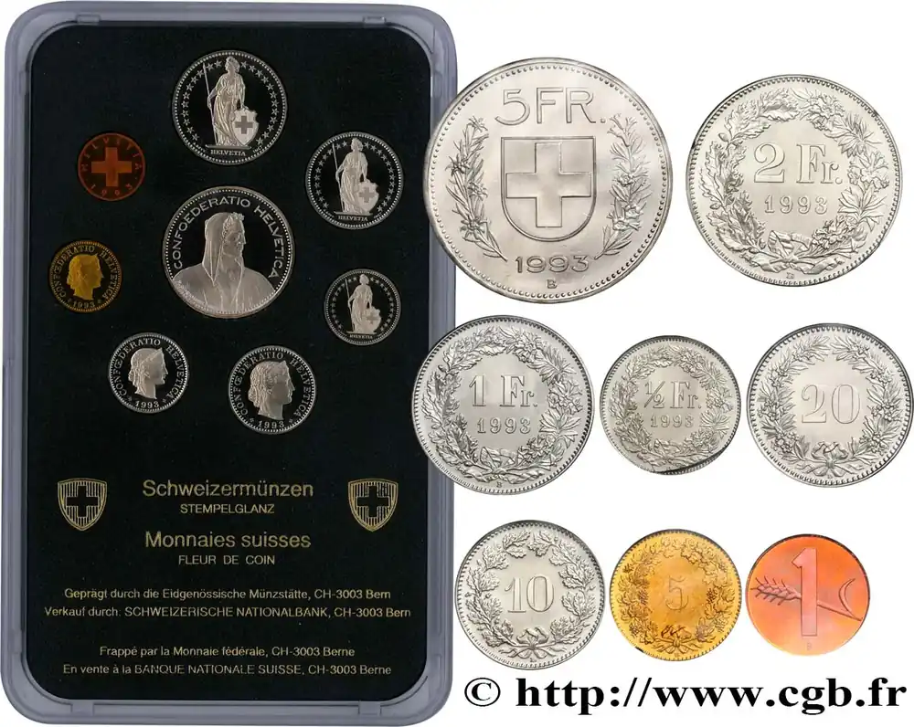 SUISSE Série FDC 8 Monnaies 1993 fwo_537216 Monde Remise