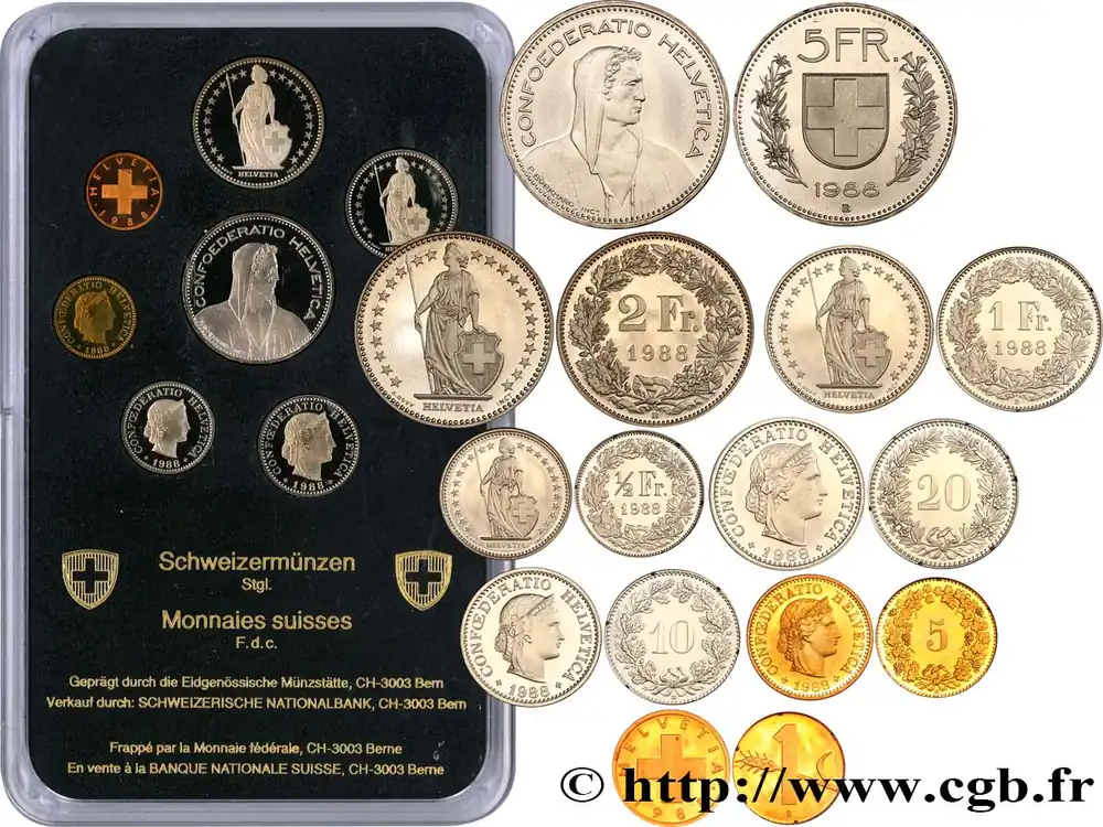 SUISSE Série FDC 8 Monnaies 1988 fwo_838096 Monde Populaire
