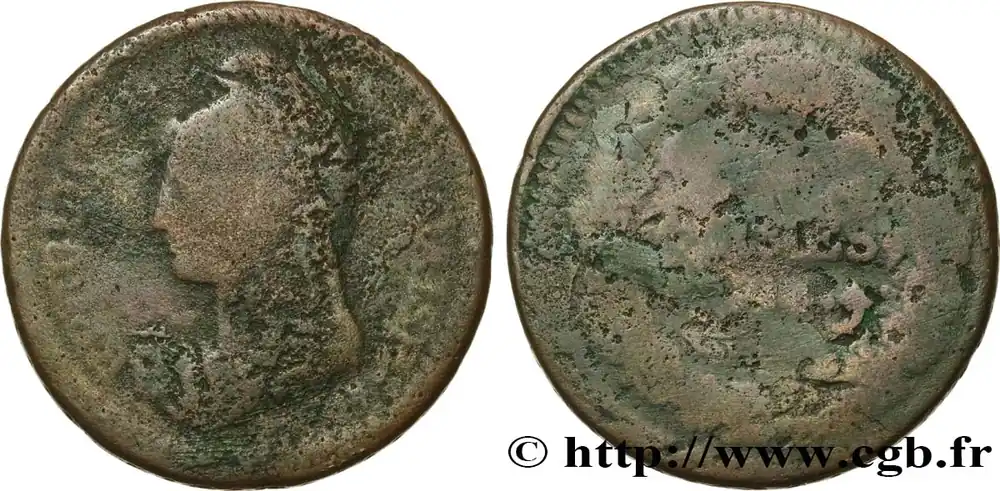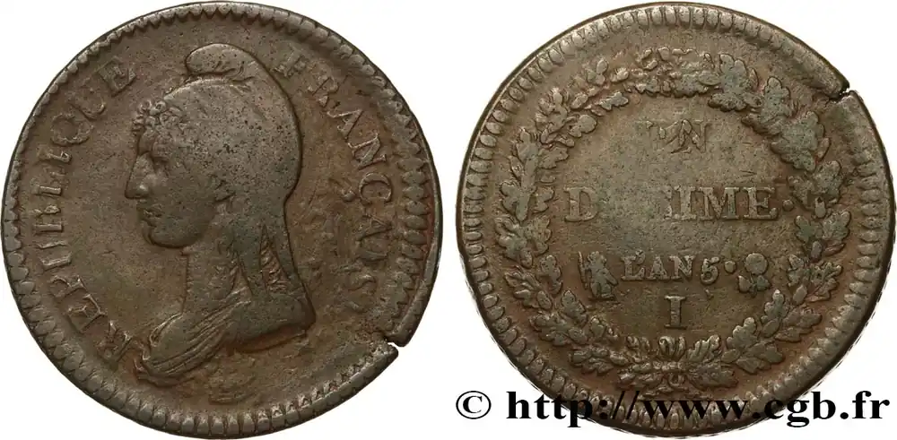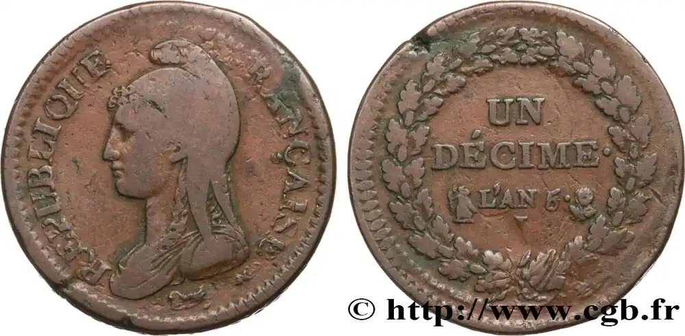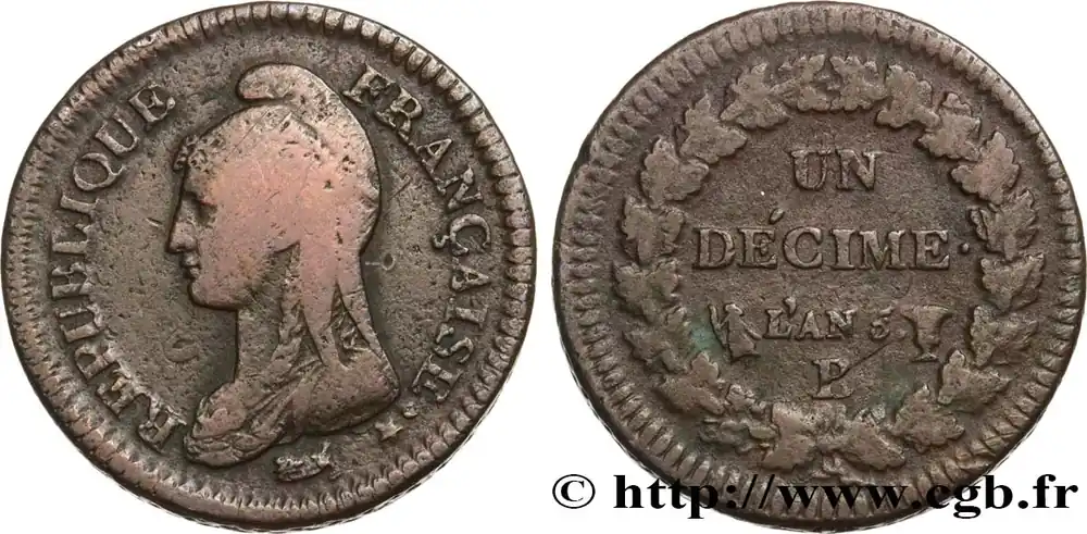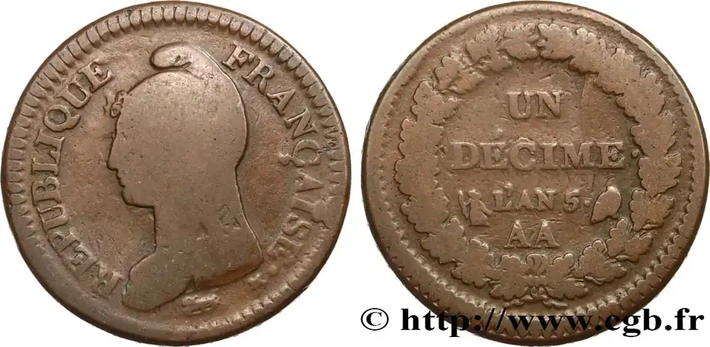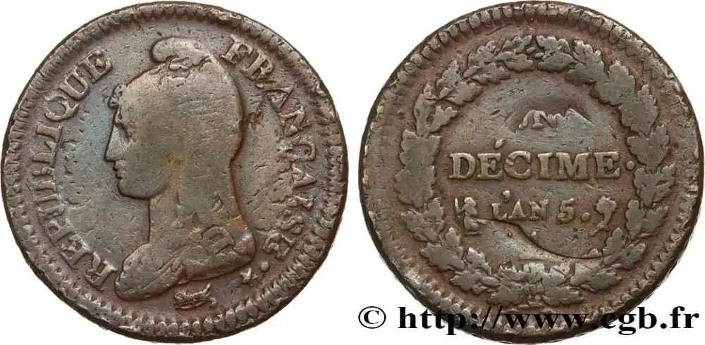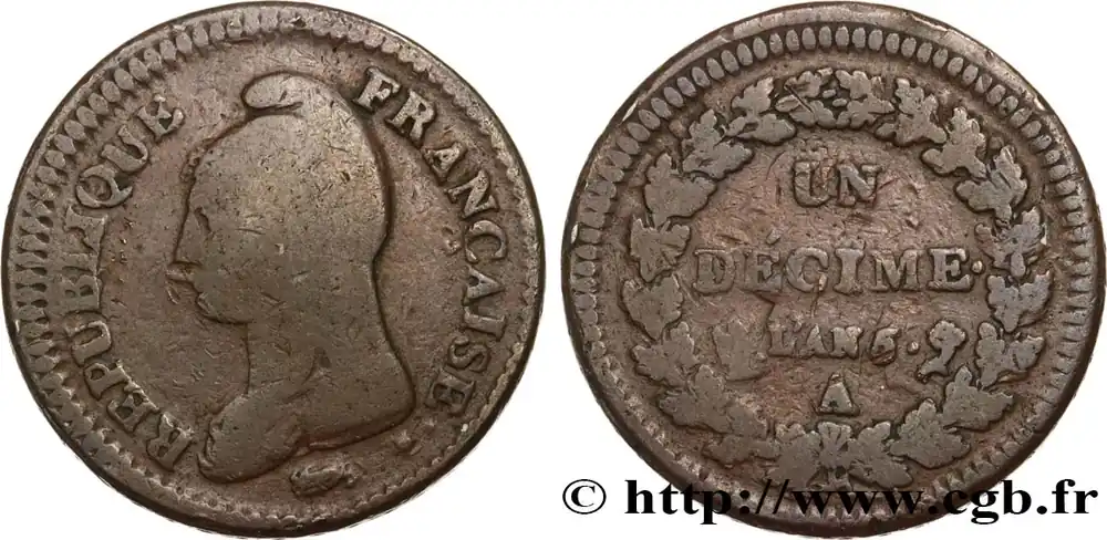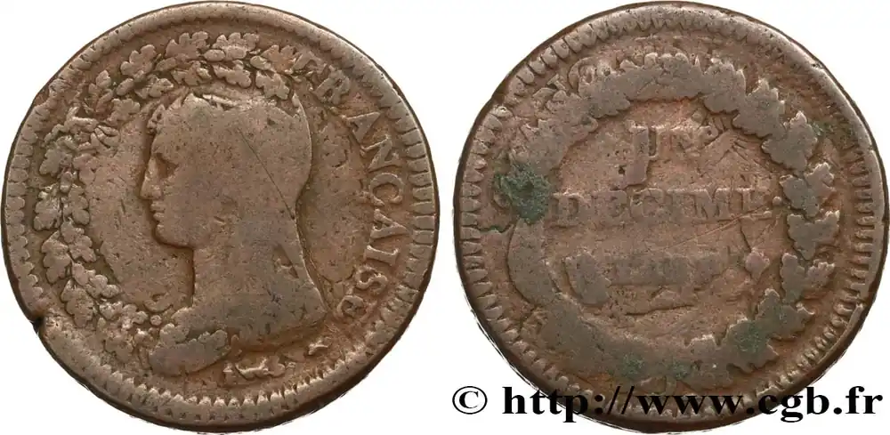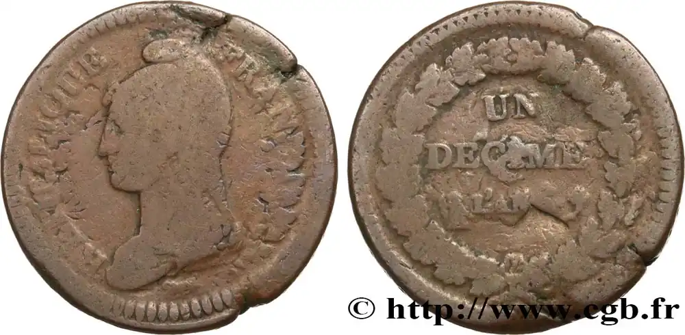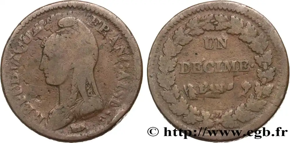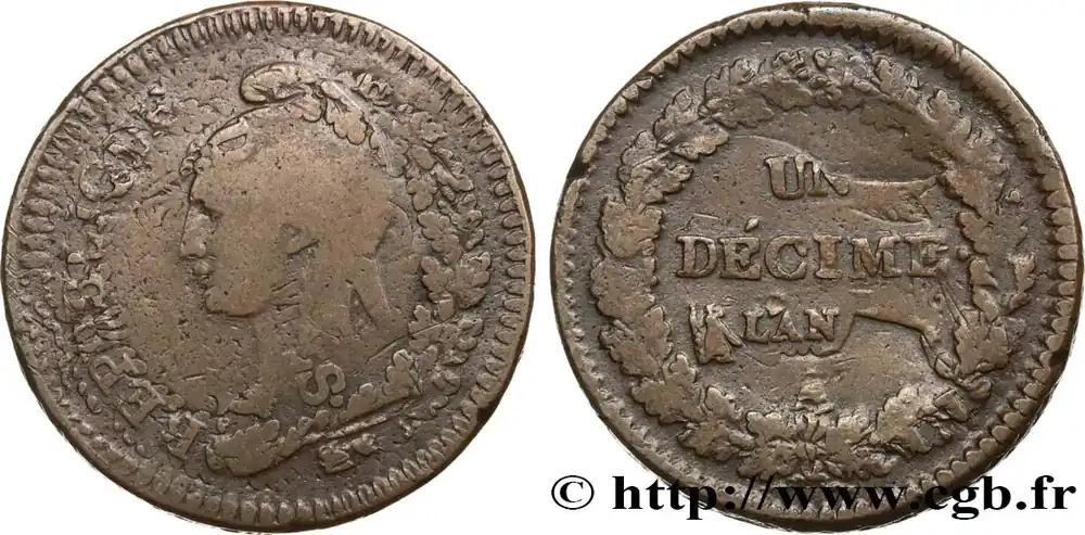 Un décime Dupré, grand module, "refrappage" du 2 décimes