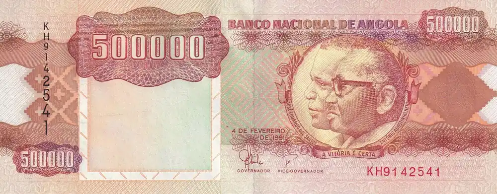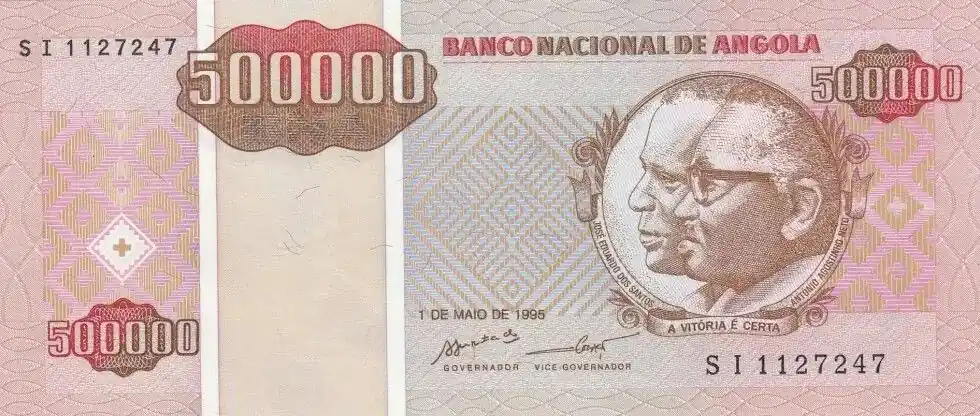 Billet Angola 500000 Kwanzas Reajustados Reajustados, Dos Santos, Neto – 1995 Dernier Modèle
