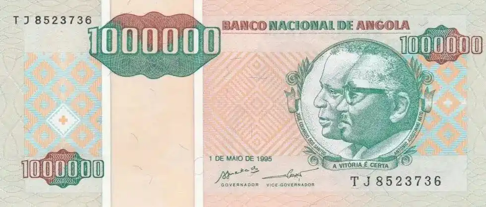 Billet Angola 1000000 Kwanzas Reajustados Reajustados, Dos Santos – Neto – Ecolière – 1995 Fait Main
