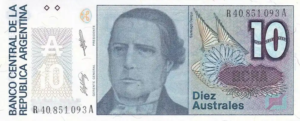 Billet Argentine 10 Australes – S. Derqui – ND(1985) – Remplacement – P.325r Commander Maintenant