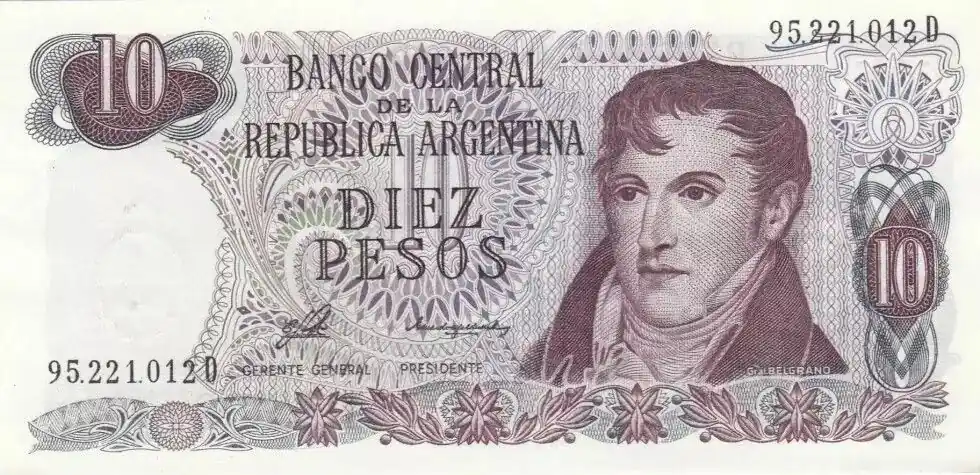 Billet Argentine 10 Pesos Général. Manuel Belgrano – Série D – 1976 – Neuf Gros Lot