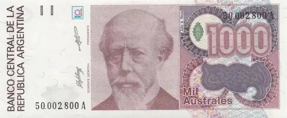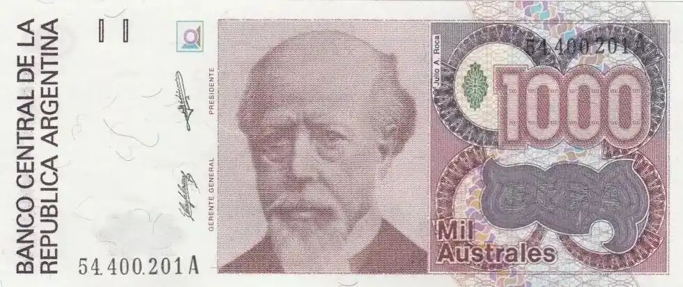 Billet Argentine 1000 Australes J. A. Roca – Liberté – 1988 Certifié