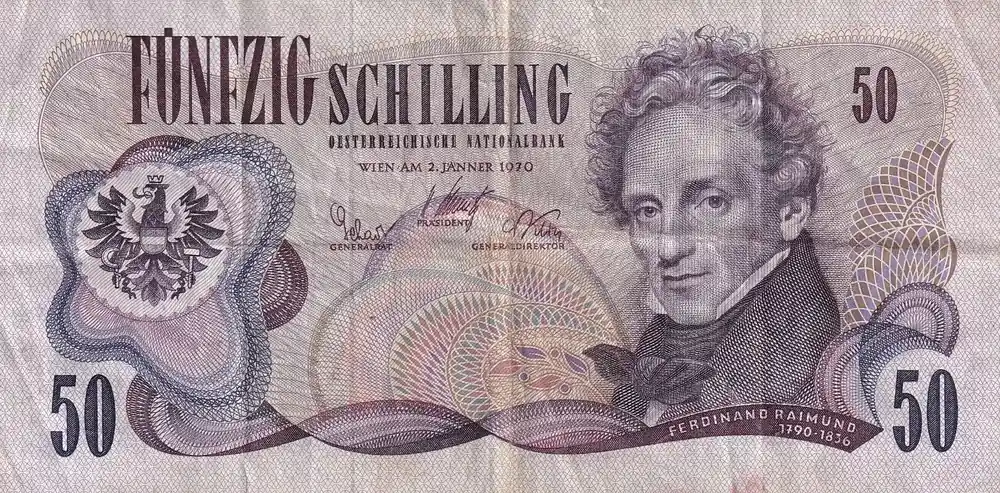 Billet Autriche 50 Schilling – Ferdinand Raimund – 1970 – Série C – P.144 Meilleure Vente