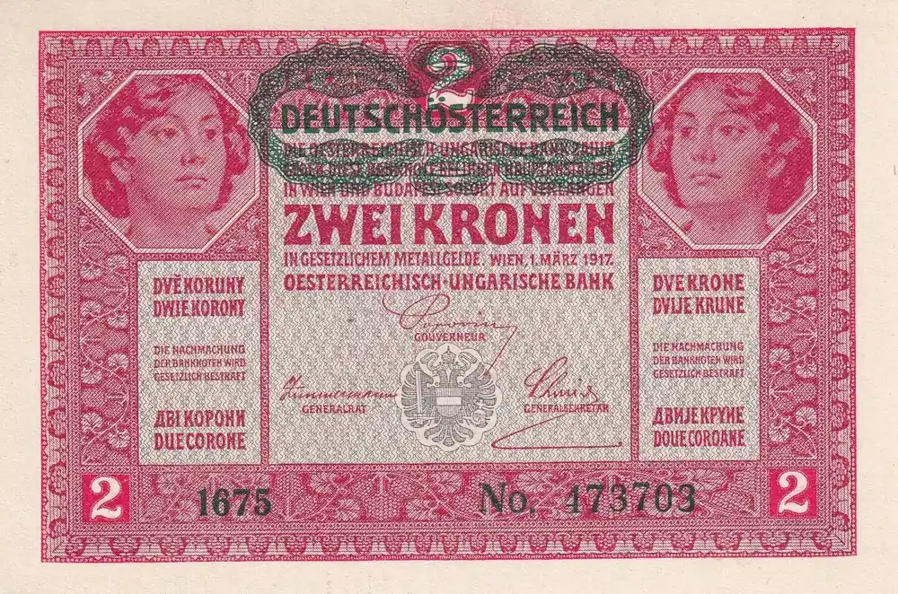 Billet Autriche 2 Kronen – Têtes de femmes – Surcharge verte – 1917 – P.50 Remise