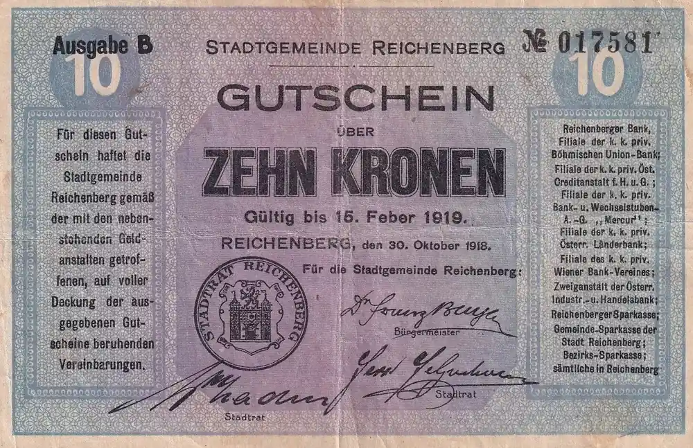 Billet Autriche 10Kronen – Gutschein – 1919 Fait Main