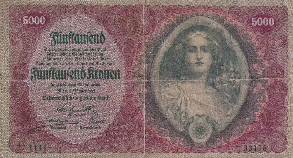 Billet Autriche 5000 Kronen – Jeune Femme – 1922 – P.79 Haute Qualité
