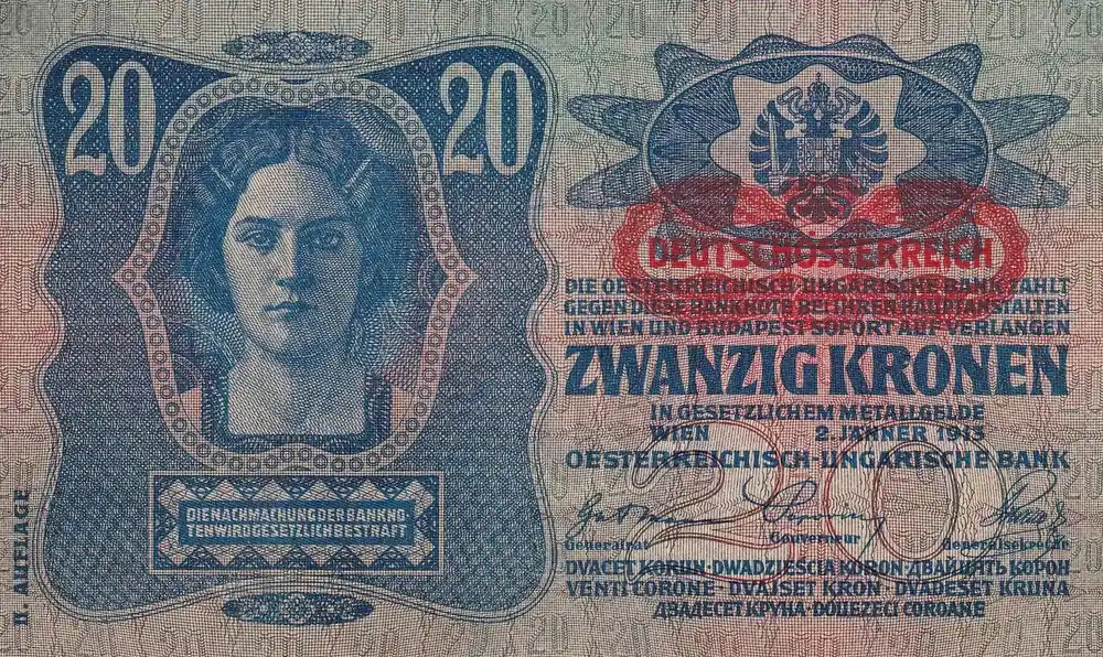 Billet Autriche 20 Kronen – Jeune femme – Armoiries – 1913 – P.14 Prix Choc