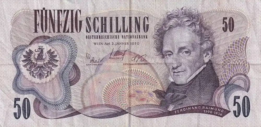 Expédié Aujourd’hui Billet Autriche 50 Schilling – Ferdinand Raimund – 1970 – Série E – P.144