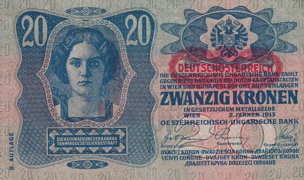 Must-Have Billet Autriche 20 Kronen – Jeune femme – Armoiries – 1913 – P.14
