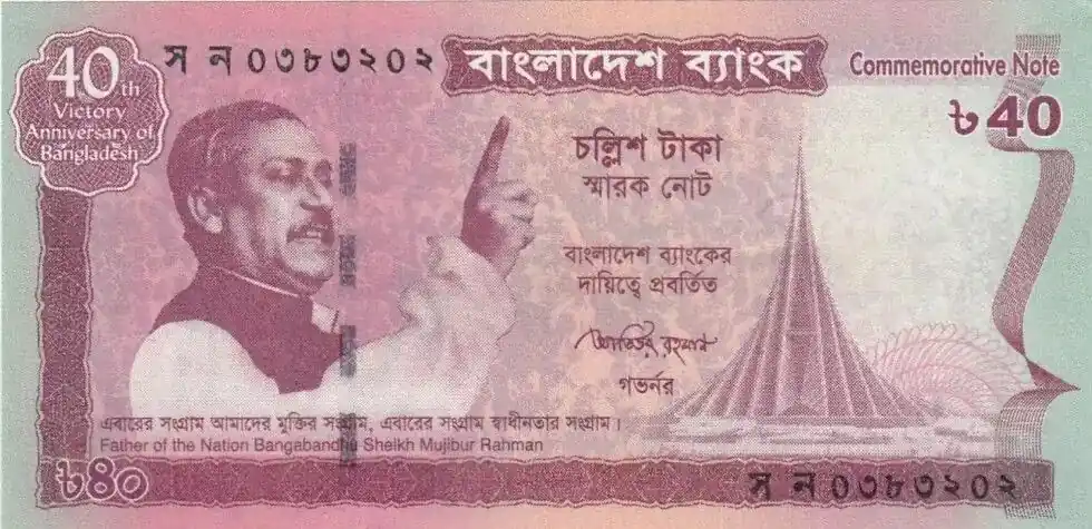 Billet Bangladesh 40 Taka M. Rahman – 40 ans de la Victoire 1971-2011 Soldes