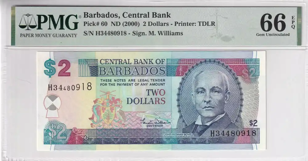 Billet Barbade 2 Dollars – John R. Bovell – PMG 66 EPQ Jusqu’à Épuisement Des Stocks