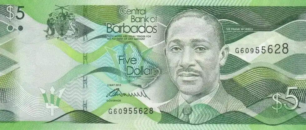 Artisanat Billet Barbade 5 Dollars- Sir Franck Worrell – 2022 – Série G