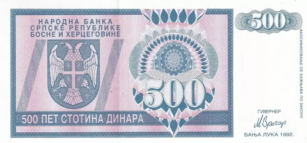 Fait Main Billet Bosnie-Herzégovine 500 Dinara – Aigle – 1992 – Série AA – P.136