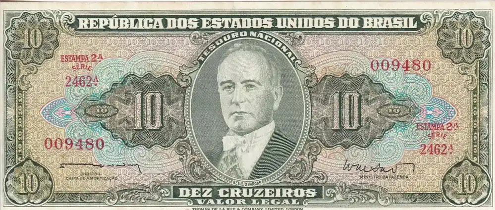 Billet Brésil 10 Cruzeiros – Getulio Vargas – ND (1962) – Série 2462A – P.177a Affaire À Saisir