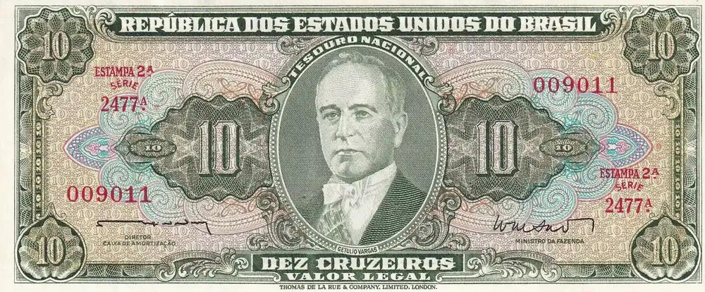 Artisanat Billet Brésil 10 Cruzeiros – Getulio Vargas – ND (1962) – Série 2477A – P.177a