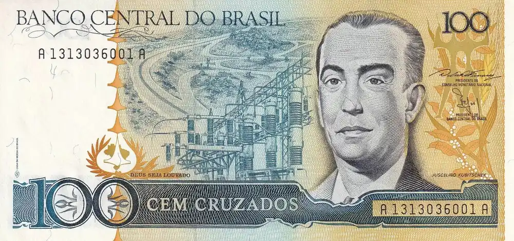 Billet Brésil 100 Cruzeiros – Juscelino Kubitschek – Brasilia – ND (1987) – Série A-A – P.211b En Vogue