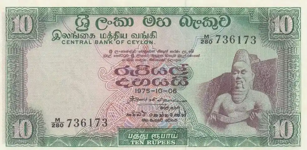 En Vogue Billet Ceylan 10 Rupees, Roi Parakkrama – 1975 – P. 74 c