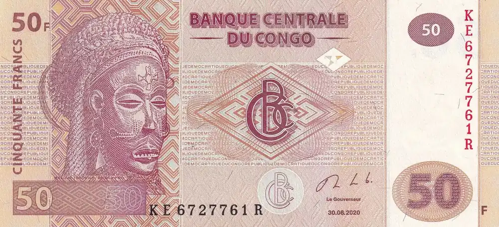 Populaire Billet Congo (RDC) 50 Francs – Masque – Village – 2020 – Série KE – P.NEW