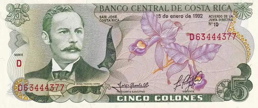 Billet Costa Rica 5 Colones – Rafael Y. Castro – Scène de théâtre – 1992 – Série D – P.236e Prix Cassé