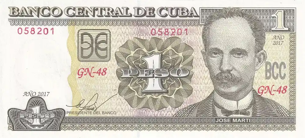 Nouveauté Billet Cuba 1 Peso – J. Marti – F. Castro – 2017 – Série GN-48 – P.NEW
