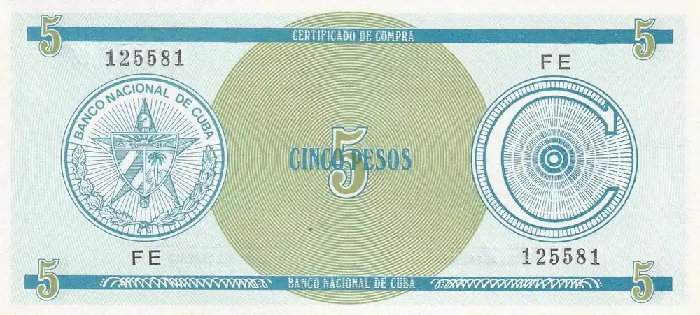 Nouvelle Collection Billet Cuba 5 Pesos – Armoiries – 1987 – Série FE – P.FX13a