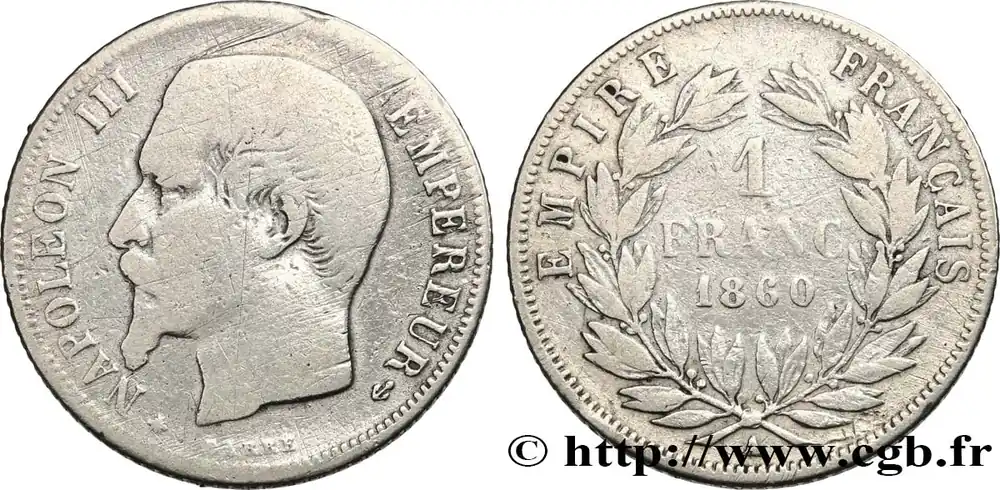 Super Prix 1 franc Napoléon III, tête nue, différent abeille 1860 Paris F.214/15 fmd_585347 Modernes