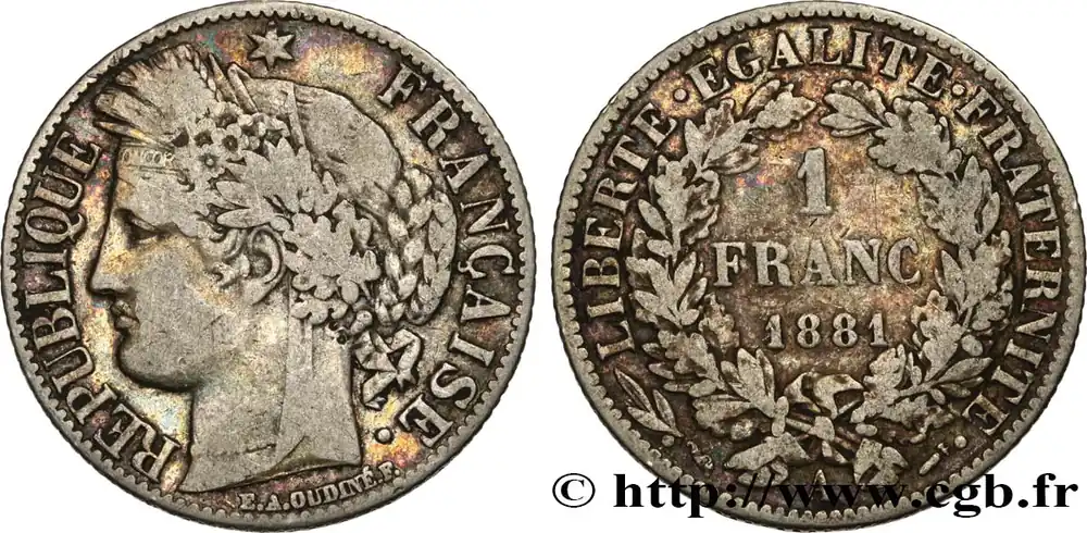 Original 1 franc Cérès, Troisième République 1881 Paris F.216/8 fmd_591802 Modernes