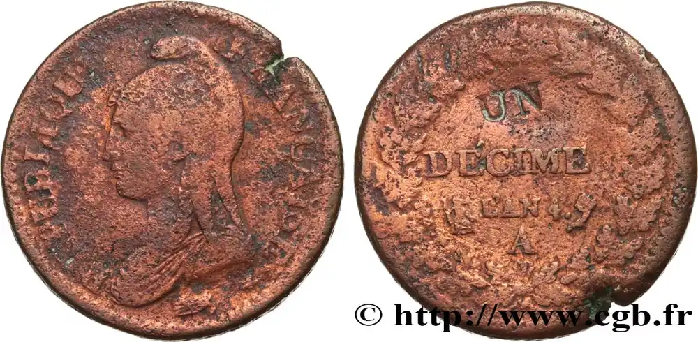 Tendance Un décime Dupré, modification du 2 décimes 1796 Paris F.127/1 fmd_584023 Modernes