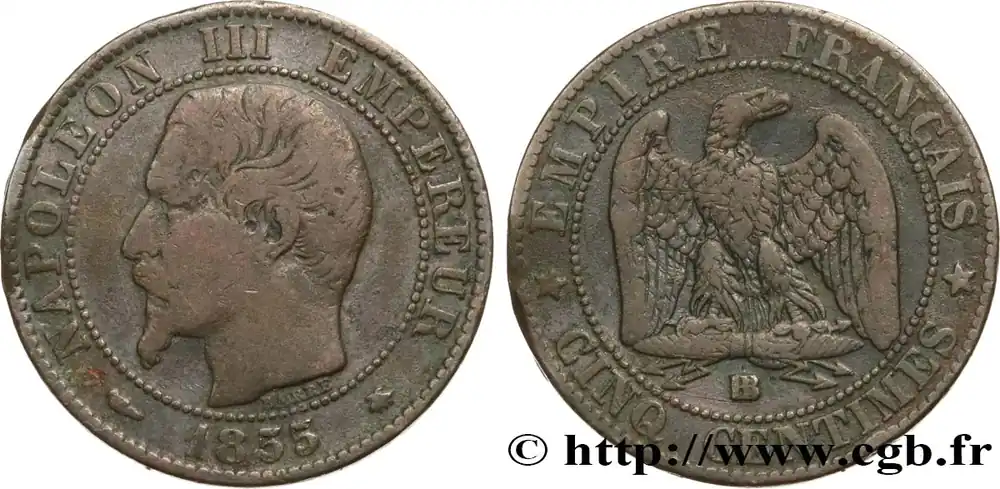 Satisfait Ou Remboursé Cinq centimes Napoléon III, tête nue 1855 Strasbourg F.116/20 fmd_584261 Modernes