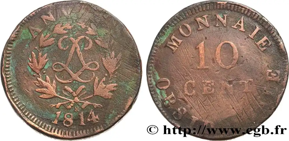 Soldes 10 cent. Anvers au double L, frappe de l’atelier de Wolschot 1814 Anvers F.130C/2 fmd_586645 Modernes