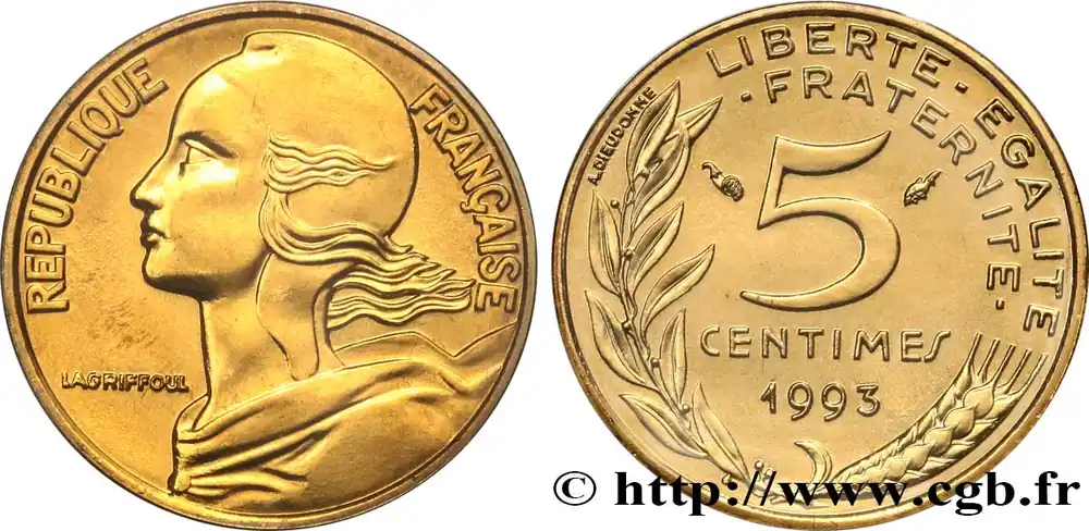 Vente Directe 5 centimes Marianne, BU (Brillant Universel), frappe médaille 1993 Pessac F.125/34 fmd_582386 Modernes