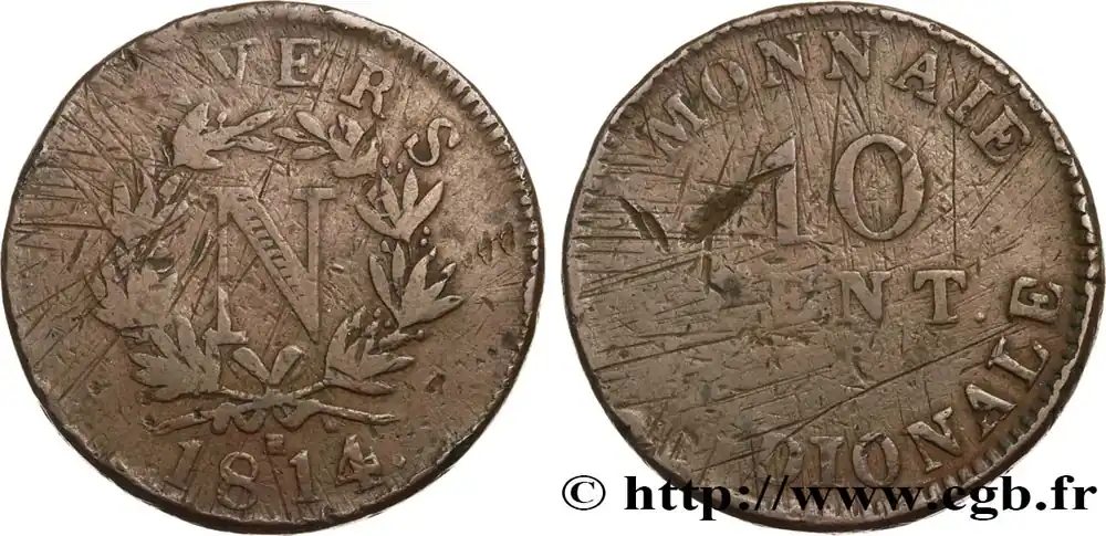10 cent. Anvers à l’N, frappe de l’atelier de Wolschot 1814 Anvers F.130A/4 fmd_590811 Modernes Dernier Modèle