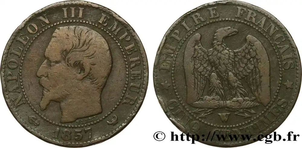 Soldes Cinq centimes Napoléon III, tête nue 1857 Lille F.116/43 fmd_605438 Modernes