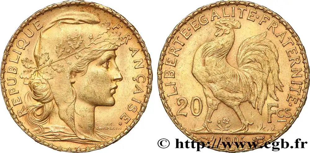 Soldes 20 francs or Coq, Liberté Égalité Fraternité 1908 Paris F.535/2 fmd_611494 Modernes