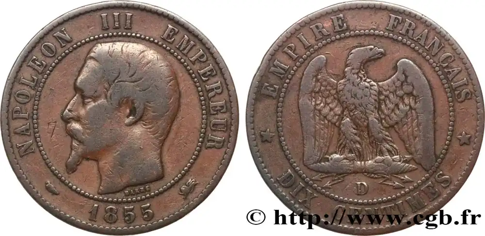 Meilleure Qualité Dix centimes Napoléon III, tête nue 1855 Lyon F.133/25 fmd_586885 Modernes