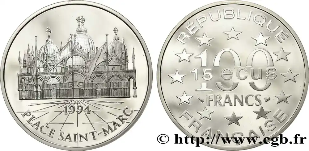 Nouvelle Collection Belle Epreuve 15 écus / 100 francs – Place Saint-Marc (Venise, Italie) 1994 F5.2008 1 fmd_613087 Modernes