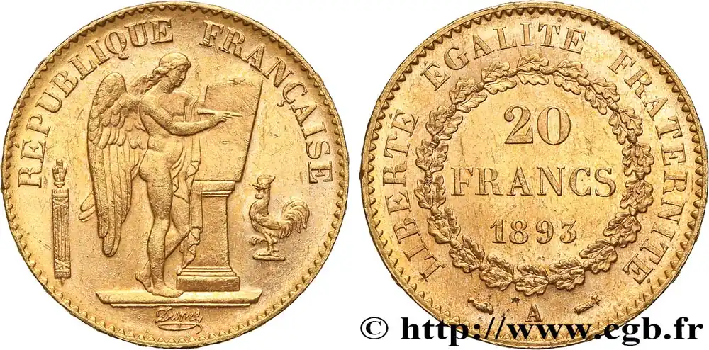 20 francs or Génie, Troisième République 1893 Paris F.533/17 fmd_619909 Modernes Commander Maintenant