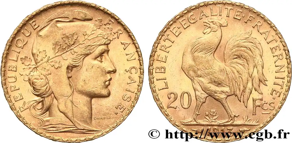 20 francs or Coq, Liberté Égalité Fraternité 1913 Paris F.535/7 fmd_619936 Modernes Commander Vite