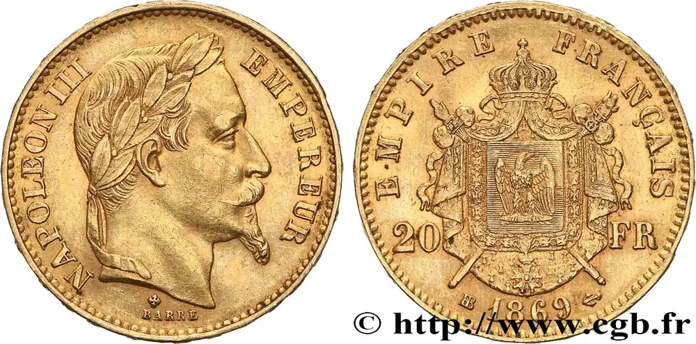 20 francs or Napoléon III, tête laurée 1869 Strasbourg F.532/21 fmd_619900 Modernes Prix Réduit