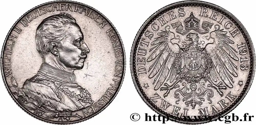 ALLEMAGNE – PRUSSE 2 Mark 25e anniversaire de règne de Guillaume II 1913 Berlin fwo_732477 Monde Gros Lot