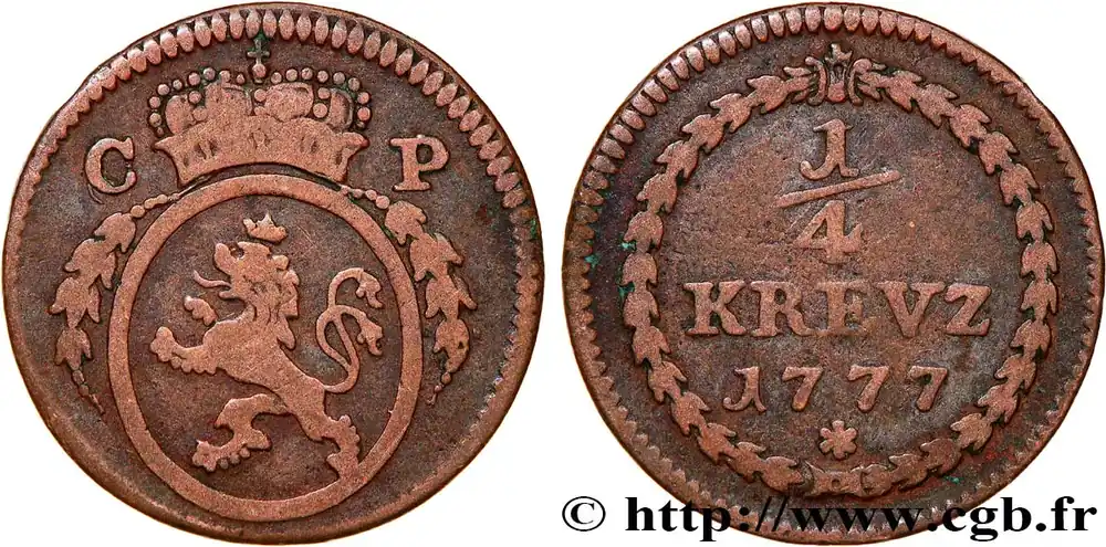 ALLEMAGNE – PALATINAT 1/4 Kreuzer Charles Théodore du Palatinat 1777 fwo_744304 Monde Meilleur Prix