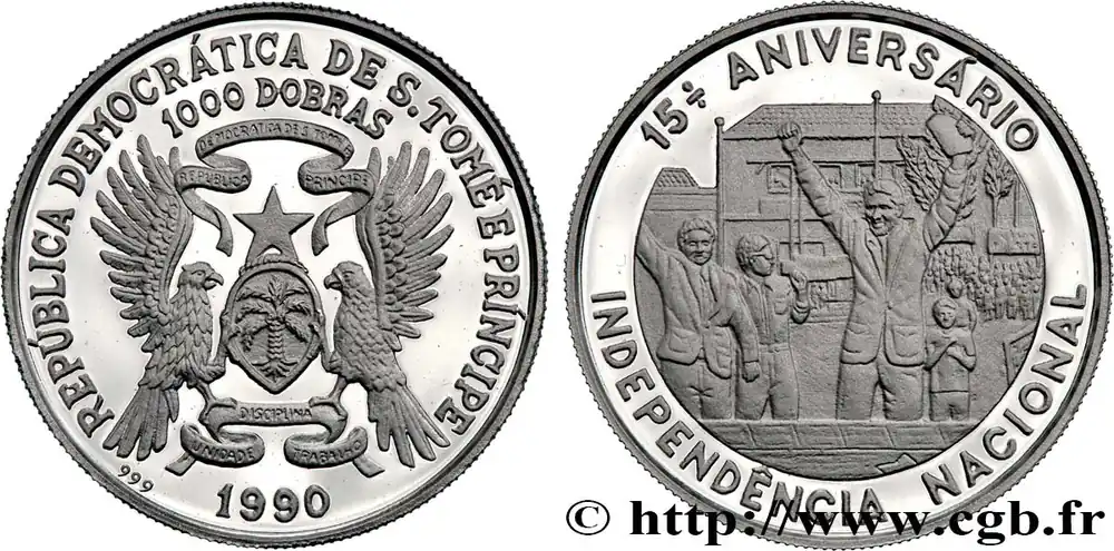 Acheter Direct SAINT THOMAS et PRINCE 1000 Dobras Proof 15e anniversaire de l’indépendance 1990 fwo_732569 Monde