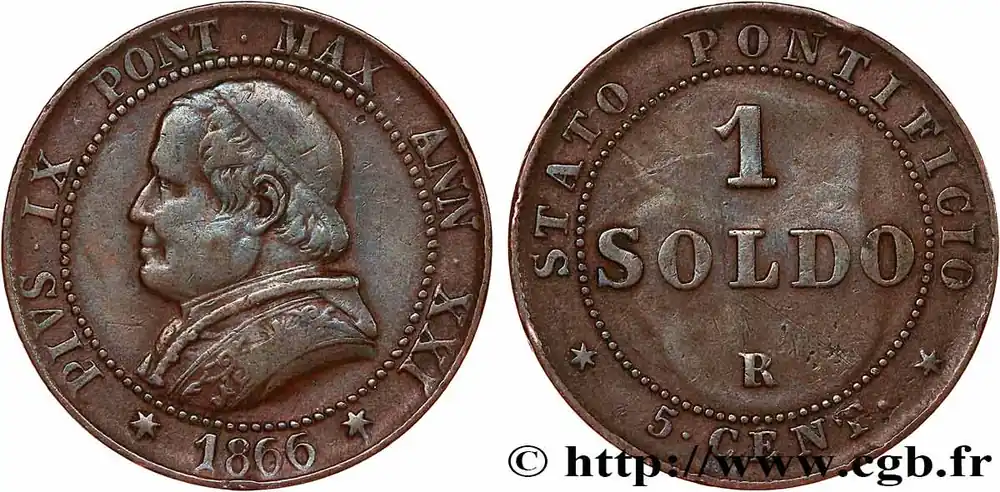 Meilleur Choix VATICAN ET ÉTATS PONTIFICAUX 1 Soldo (5 centesimi) Pie IX an XXI type gros buste 1866 Rome fwo_748214 Monde