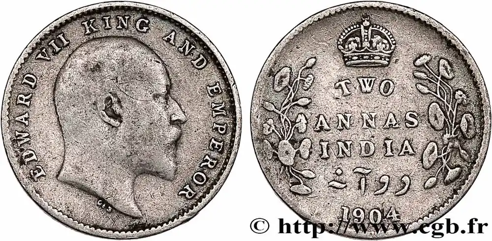 Livraison Gratuite INDES BRITANNIQUES 2 Annas Edouard VII 1904 Calcutta fwo_748345 Monde