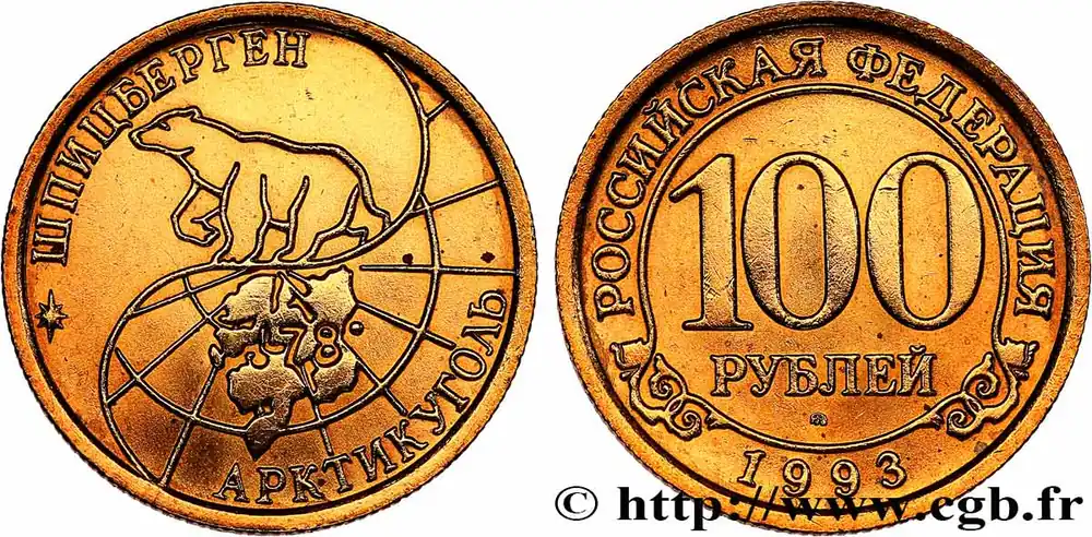 Marque SPITZBERG (Norvège) 100 Roubles compagnie minière russe Artikugol 1993 Moscou fwo_749013 Monde